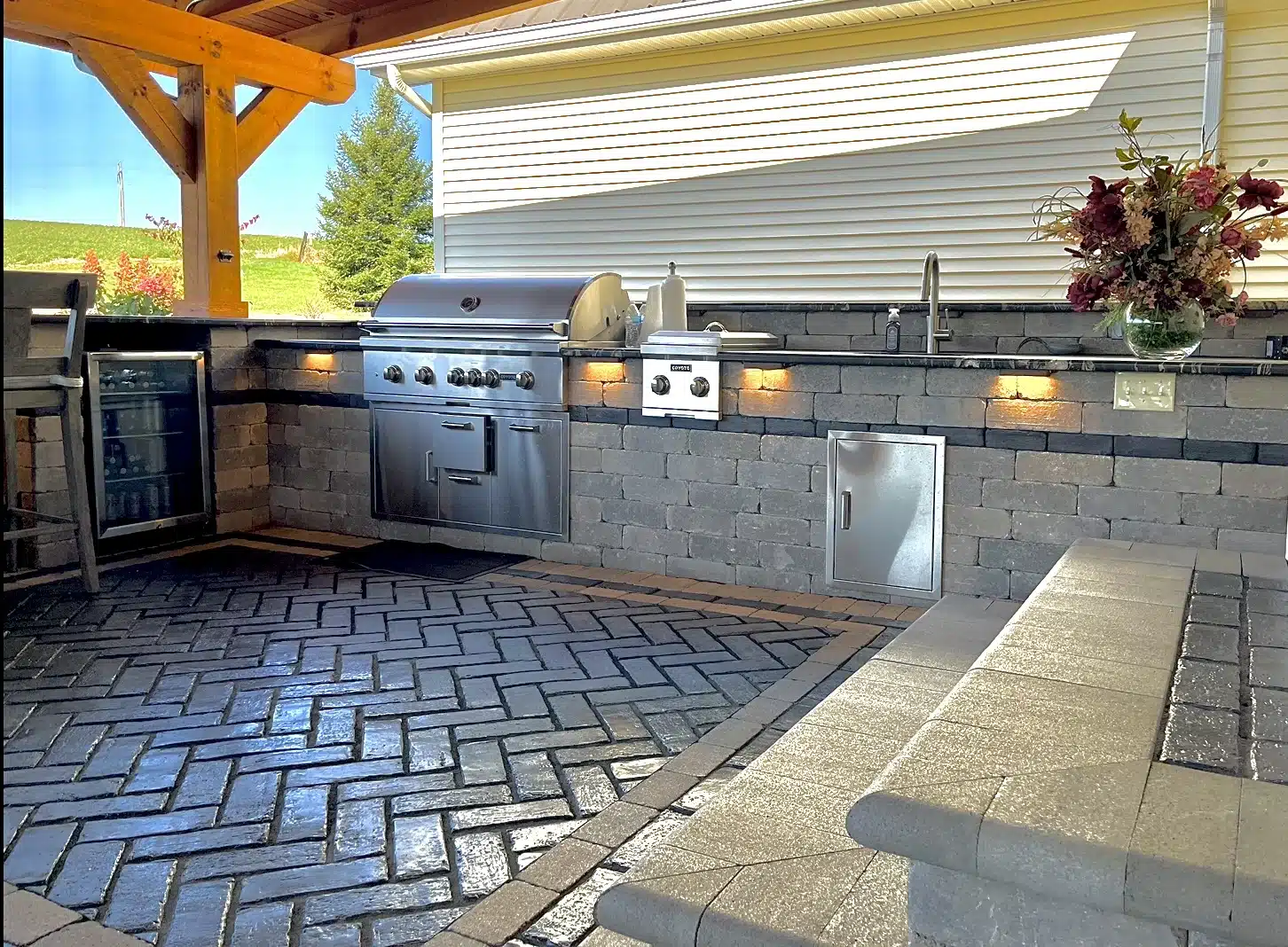 At Lintz Land Design, we specialize in creating custom-designed outdoor kitchens and bars that will add both function and beauty to your outdoor living space. We understand that each customer has their own unique vision for their property, and our goal is to bring that vision to life. We offer a wide range of options and endless possibilities for what we can do to transform your outdoor space.